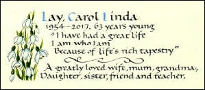 Carol did not survive her battle against cancer. After a short and very dignified fight she died on 13th February 2017. She is lovingly remembered and very much missed.
